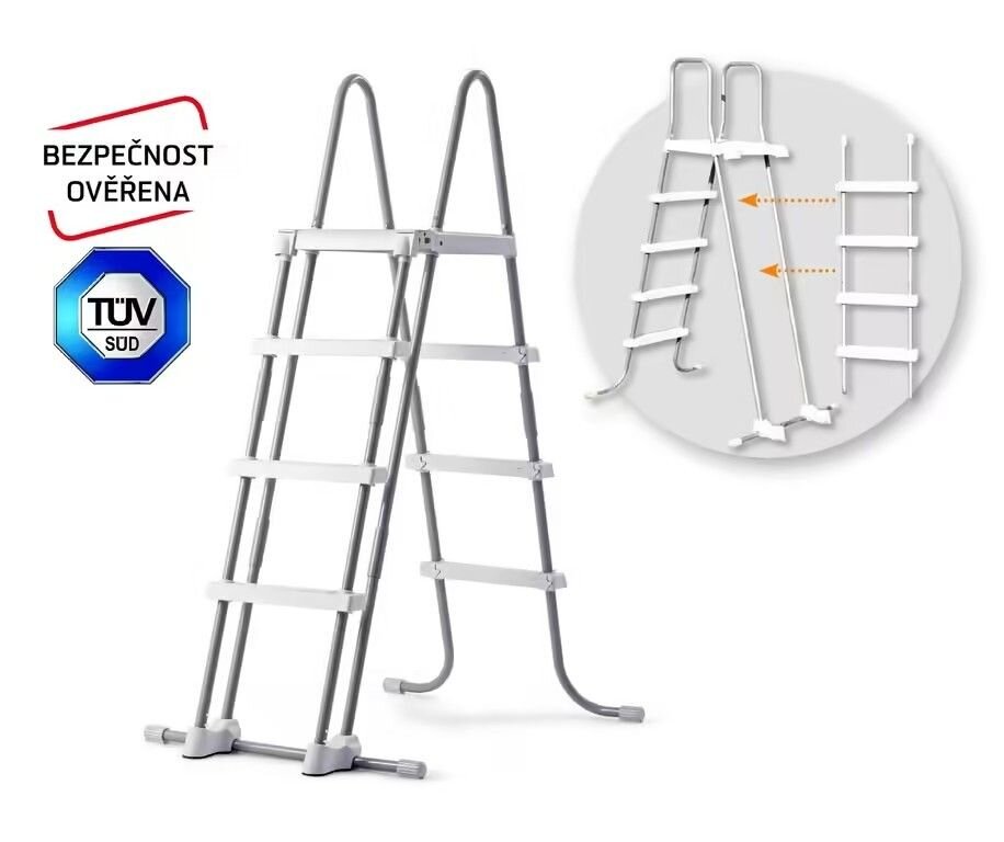 Bezpečnostní schůdky jsou ideálním doplňkem pro bazény s výškou do 1,25 m. Díky odnímatelným stupátkům pomáhají zvýšit bezpečnost a zabránit nechtěnému vstupu dětí do bazénu.