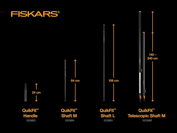 Fiskars QuikFit je navržen s cílem usnadnit vaši zahradnickou práci a umožnit vám snadno se přizpůsobit různým úkolům. Systém se skládá ze dvou hlavních částí – teleskopické rukojeti a různých vyměnitelných nástavců. Rukojeť je ergonomicky tvarovaná a nabízí pohodlný úchop, který minimalizuje únavu rukou a zároveň poskytuje stabilitu a přesnost.