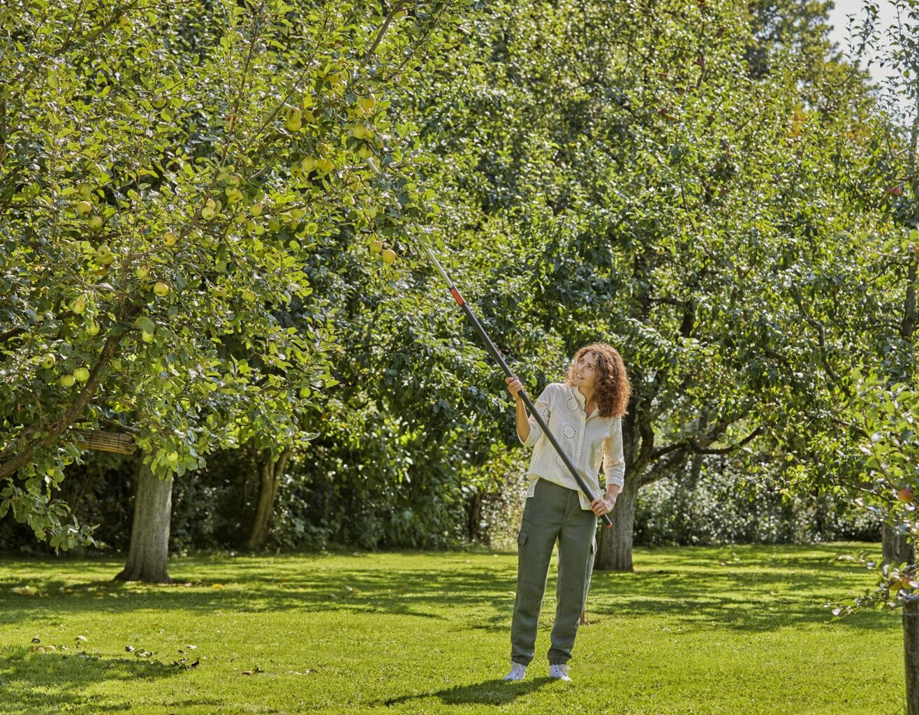 GARDENA hák na větve combisystem je ideálním pomocníkem k setřásání ovoce ze stromu. GARDENA combisystem umožňuje flexibilní používání díky vyměnitelným koncovým nástrojům. Hák na větve je kompatibilní se všemi násadami řady GARDENA combisystem a lze jej nasunout a zajistit pomocí šroubu. Při použití v kombinaci s teleskopickou násadou GARDENA combisystem (č. v. 3721-20) snadno dosáhnete na vzdálenější větve nebo vysoko visící plody, jako jsou např. jablka. Pevné spojení mezi hákem na větve a násadou zajišťuje vždy pohodlnou práci. Díky esovitému tvaru háčku můžete hák na větve použít k podpoře větví nebo k jejich třesení. Háček je ideální pro sklizeň opadavého ovoce. Kromě toho lze hák na větve v zimě použít k odstranění nařezaných větví ze stromů a odklízení sněhu z větví. Pro prostorově úsporné skladování můžete použít combisystem věšák na nářadí Flex (č. v. 3505-20). Na hák na větve combisystem poskytuje GARDENA záruku v trvání 25 let. Rozšiřte svou rodinu nástrojů. GARDENA combisystem. Možnost výměny koncového nástroje. Odolnost. Pro jakýkoliv zahradní úkol.