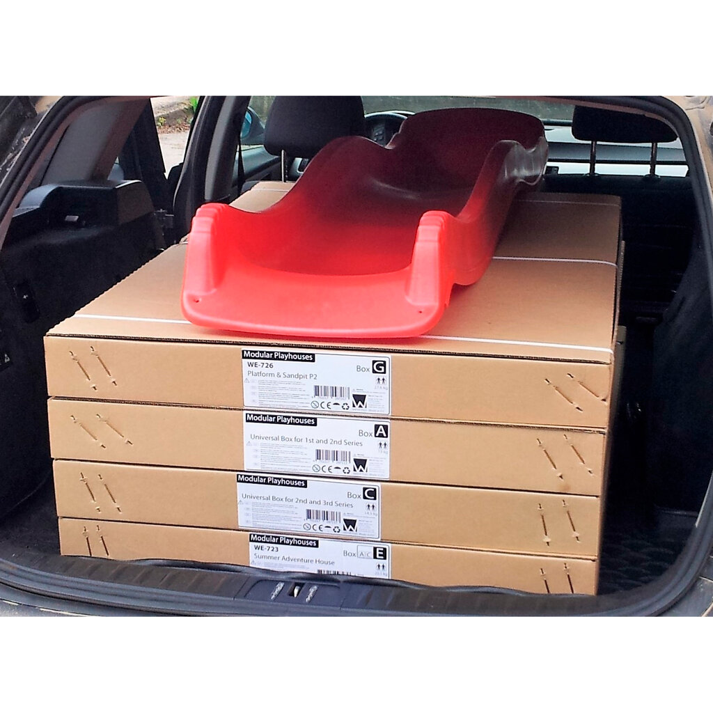 Domeček je dodáván v rozloženém stavu z prefabrikovaných dílů včetně spojovacího materiálu. Celé stěny a podlaha, které stačí sešroubovat k sobě. Pouze střecha se sestavuje z jednotlivých prken, které do sebe zapadají. Podesta a houpačka jsou dodávany též v rozloženém stavu (jednotlivé trámy). Dřevo je povrchově ošetřeno ochranným nátěrem.