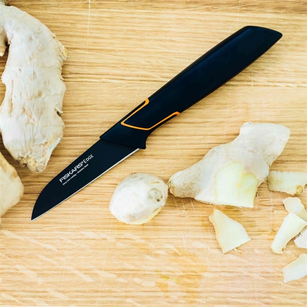 Loupací nůž Fiskars EDGE je určen ke krájení a porcování drobných pokrmů a loupání nejen ovoce a zeleniny.