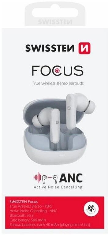 Focus Bluetooth Sluchátka TWS ANC, bílá SWISSTEN 51500100