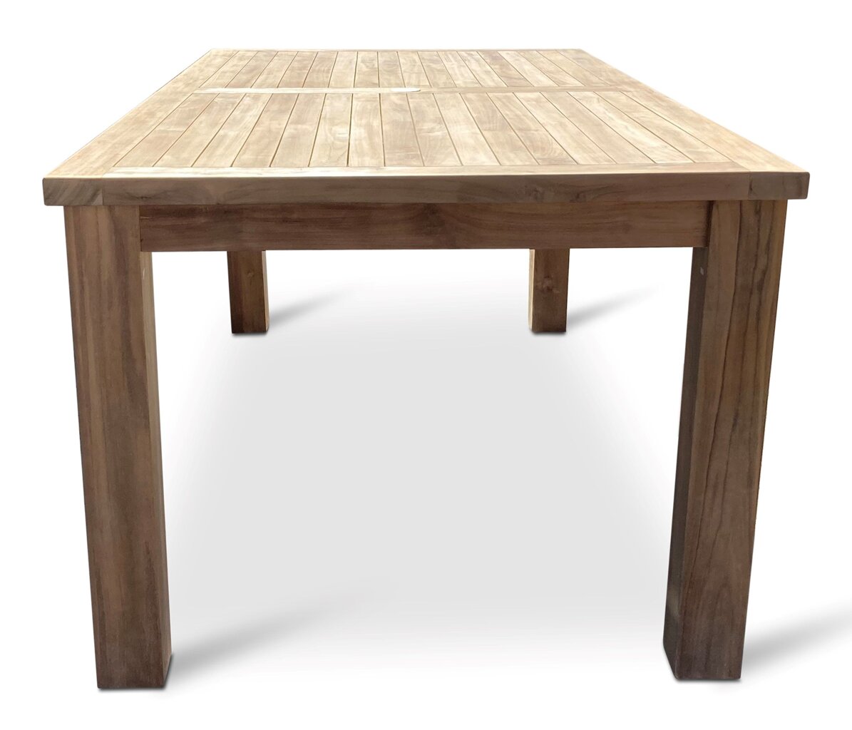 Obdélníkový zahradní stůl Garden III. značky NOELA je vyroben z kvalitního exotického teakového dřeva, které je známé svou tvrdostí, dlouhou životností a odolností vůči povětrnostním vlivům. Přírodní provedení teak natural bez povrchové úpravy zvýrazňuje přirozenou kresbu dřeva a dodává stolu autentický vzhled. Díky rozměrům 200 x 100 cm je stůl ideální pro pohodlné sezení až 8 osob. Ve středu desky je praktický otvor pro slunečník včetně dřevěné záslepky. Stůl Garden je elegantním a funkčním doplňkem pro vaši zahradu, terasu i interiér.
