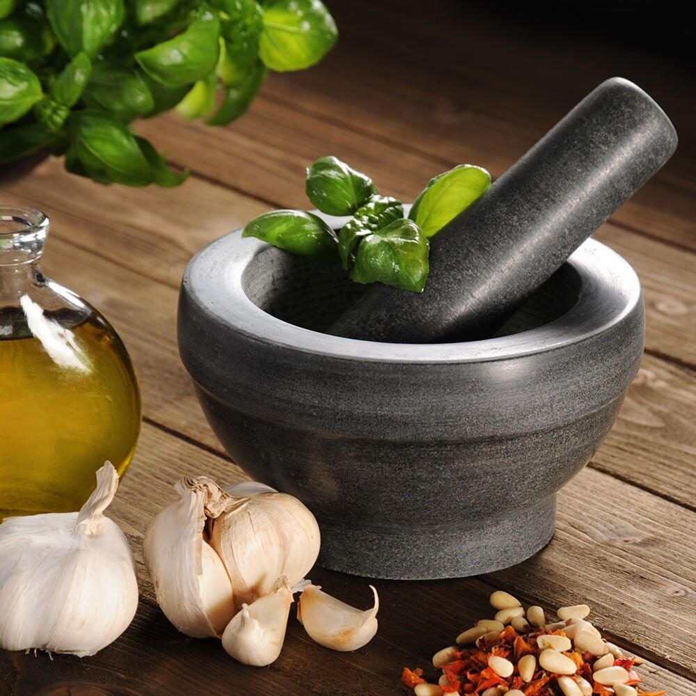 Robustní hmoždíř z leštěné žuly je ideální pro drcení koření a bylinek. Díky masivní konstrukci a praktické paličce zajistí precizní zpracování ingrediencí pro vaše recepty.