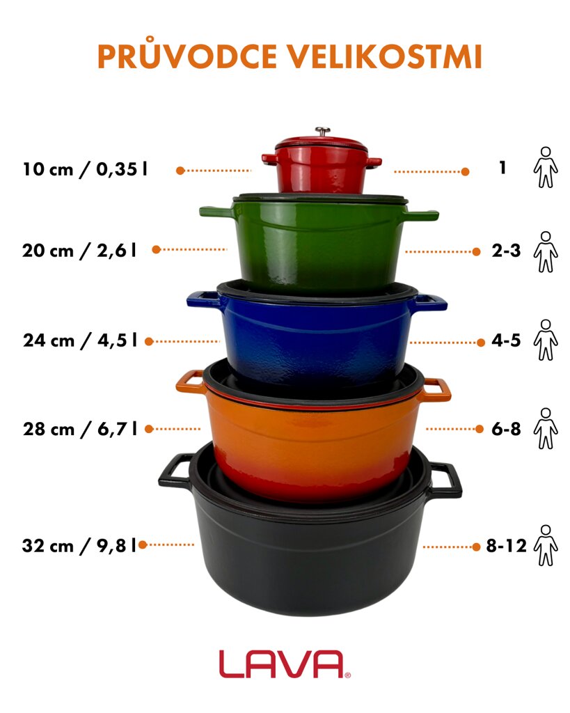 Parametry litinové hrnce červeného o obsahu 2,6 l Lava Metal: