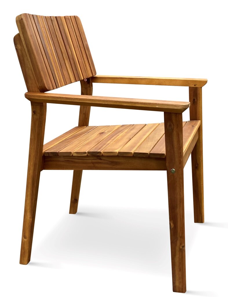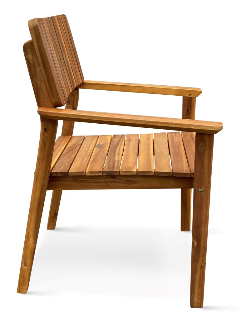 Zahradní stohovatelné křeslo Lucy z akáciového dřeva spojuje praktický design s odolností vůči povětrnostním vlivům. Ideální volba pro venkovní i vnitřní použití s důrazem na pohodlí a úsporu místa.