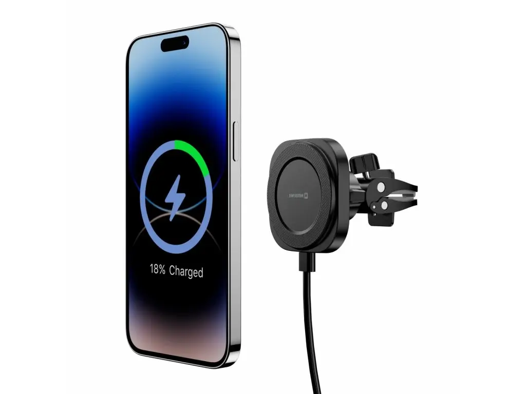Magnetický držák na mobil do auta s bezdrátovým nabíjením 15 W MagStick SWISSTEN