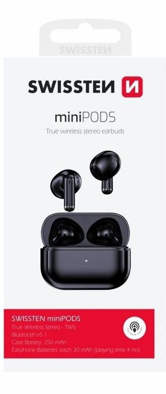 Minipods Bluetooth Sluchátka TWS, černá SWISSTEN 54200100