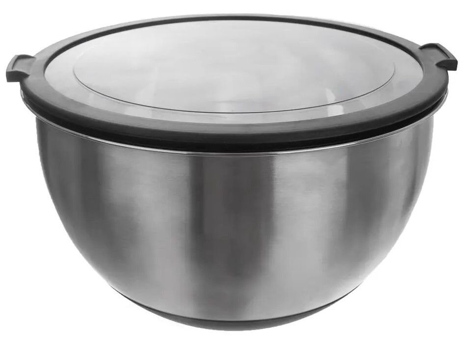 Mísa s víkem pr. 17,5 cm je vyrobena z kvalitní nerezové oceli, díky čemuž je odolná a praktická pro každodenní použití. Její průhledné plastové víčko s termoplastickou gumou zabraňuje osychání potravin a umožňuje jejich bezpečné uložení v chladničce. Uvnitř mísy je měrná stupnice od 0,5 l do 1 l pro přesné dávkování surovin. Protiskluzové silikonové dno zajistí, že mísa nebude klouzat po kuchyňské lince během přípravy jídla. Mísu lze mýt v myčce na nádobí, avšak pouze bez víka.
