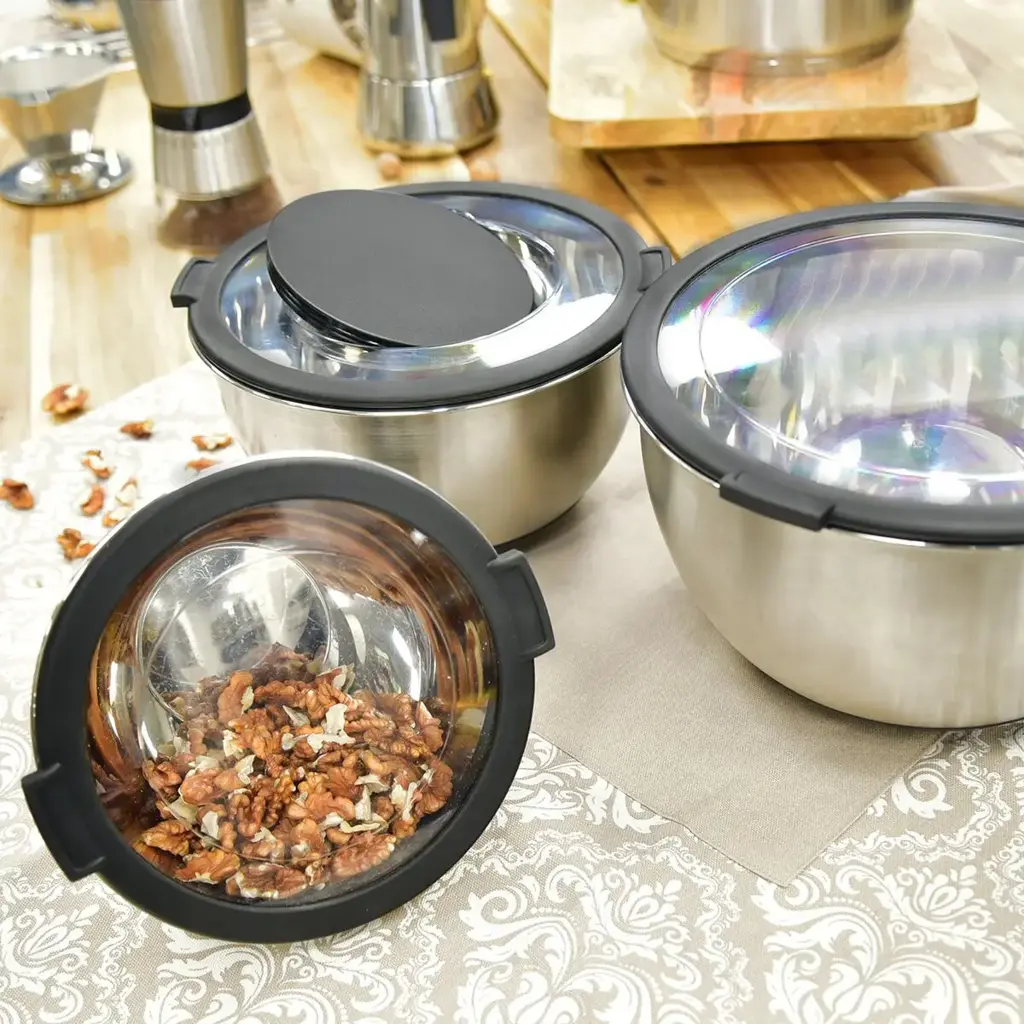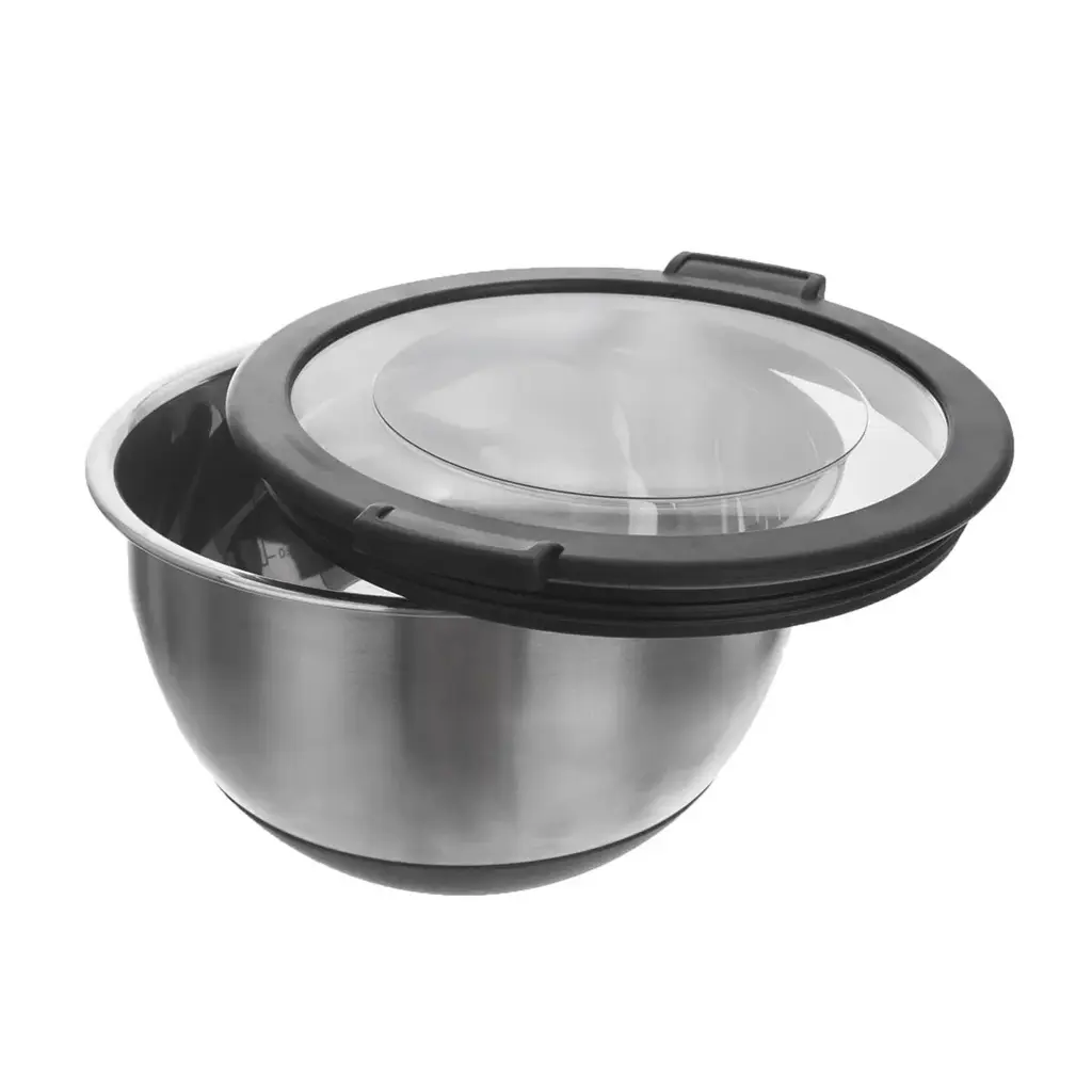 Mísa s víkem je ideální pro přípravu i skladování potravin. Vybavena protiskluzovým dnem a měrnou stupnicí.