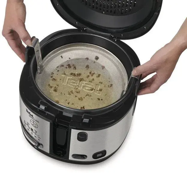 Fritéza s kapacitou 1,2 kg, patentovanou filtrací oleje a technologií chladných stěn zajistí rychlé a bezpečné smažení. Nabízí teplotní rozsah 150–190 °C, snadné čištění a pohodlnou obsluhu díky skládací rukojeti.