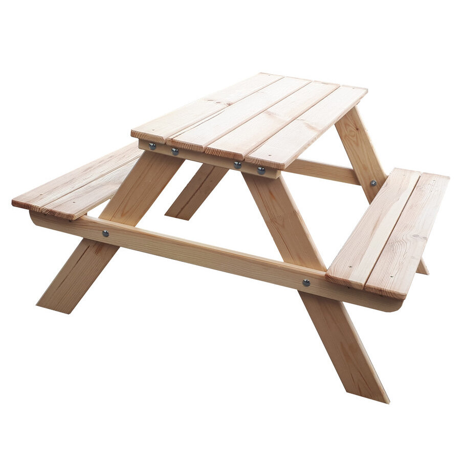 Zahradní sestava PIKNIK je zhotovena z kvalitního borovicového dřeva. K jeho ošetření můžete použít lak nebo lazuru přesně té barvy, která se vašim dětem líbí. Dětský set se skládá ze 85 cm dlouhého stolu a dvou lavic. Lavice jsou napevno připojeny ke stolu.