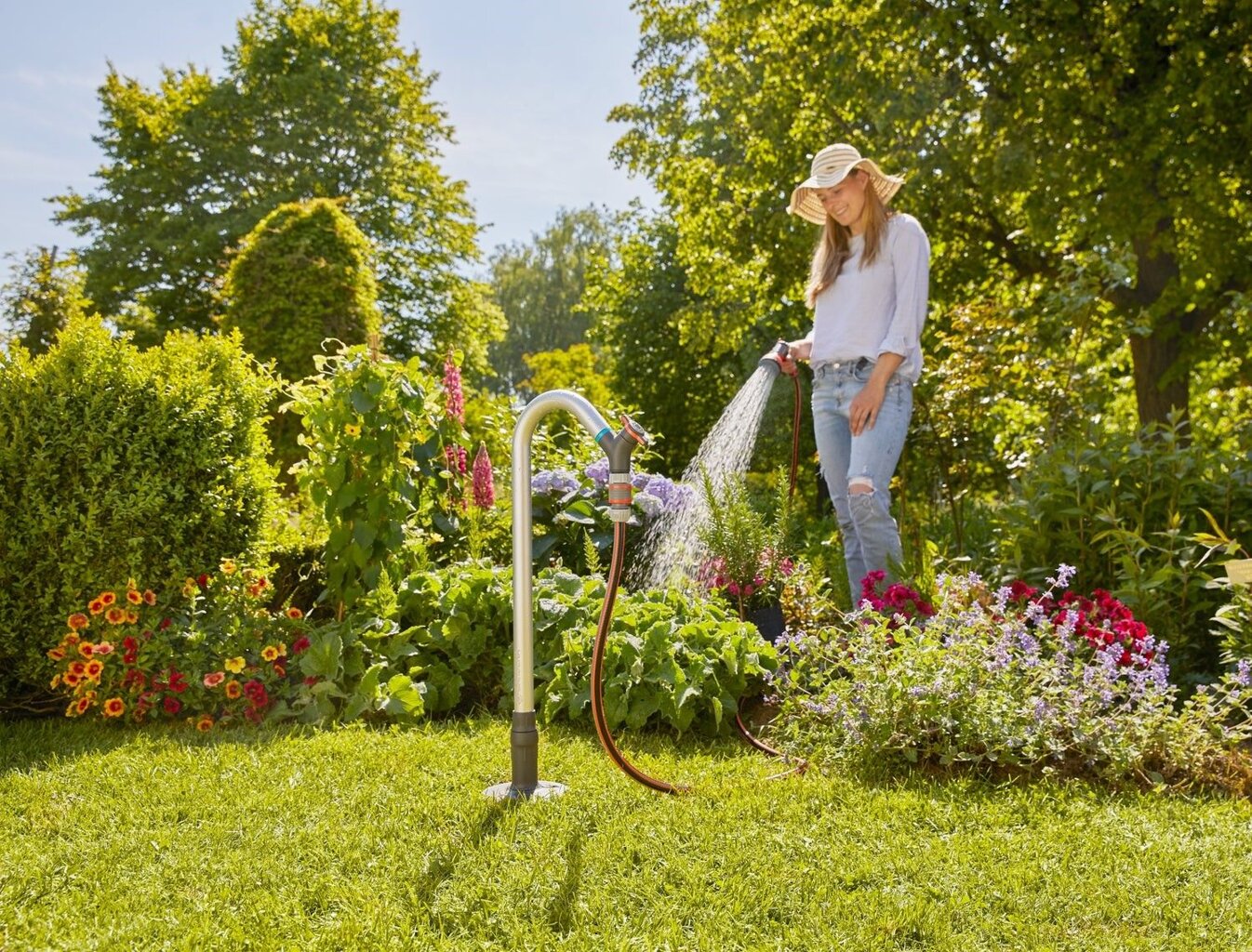 Pohodlný zdroj vody kdekoli v zahradě? Jednoduše se zahradním kohoutkem, který je součástí zavlažovacího systému Gardena Pipeline.