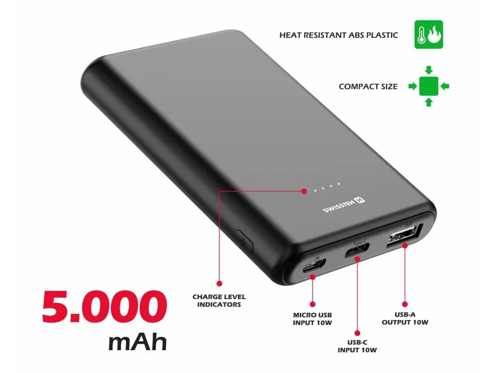 Powerbanka Power Line 5 000 mAh, 10 W, černá SWISSTEN