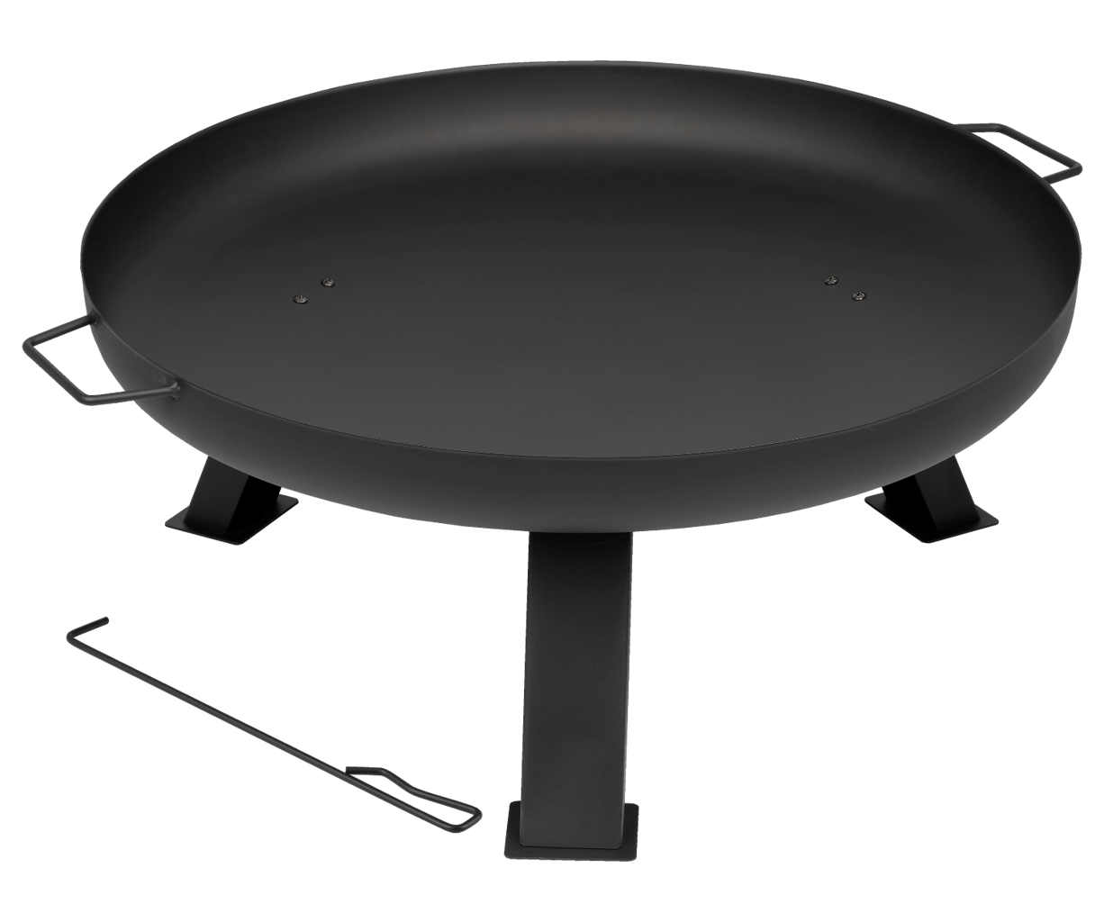 Perfektně prostorné ohniště vyrobené z robustní oceli s bočními úchyty. Včetně pohrabáče.