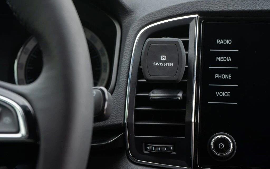 Magnetický držák do ventilace auta S-Grip Air Vent M3 značky SWISSTEN je kompaktní, elegantní a bezpečné řešení pro uchycení telefonu během jízdy. Instalace do větrací mřížky zajišťuje, že držák nebrání řidiči ve výhledu, a zároveň umožňuje otočení telefonu na výšku i na šířku. Silný magnet a pogumovaná plocha zajišťují stabilní a bezpečné držení bez poškrábání zařízení. Držák je lehký, ale dostatečně pevný i pro větší telefony o šířce 30–99 mm. V balení najdete čtyři kovové plíšky pro použití s různými modely telefonů.
