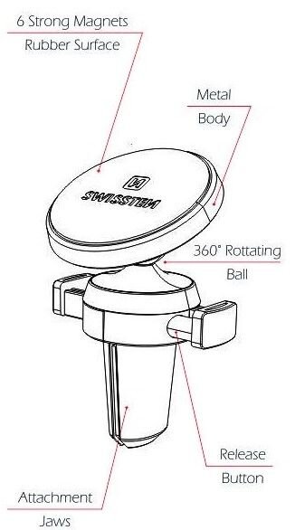 - 1× magnetický držák Swissten S-Grip Air Vent M8