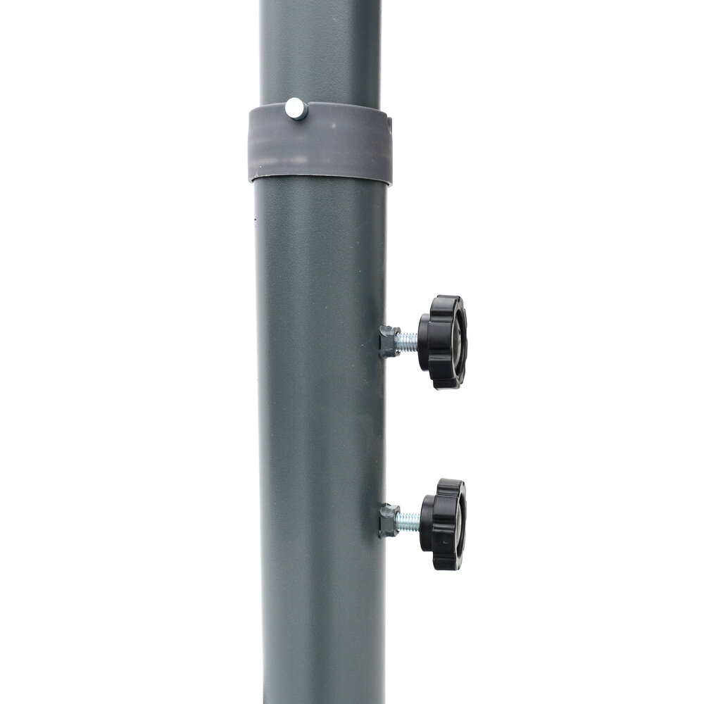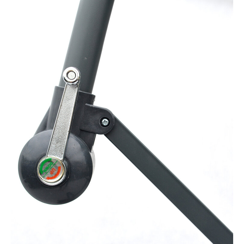 Slunečník 8080 je bočně zavěšen na konstrukci z kovu a opatřen vlastním podstavcem. Můžete individuálně nastavit úhel stínění, k otevírání i skládání slunečníku slouží otáčecí klička. Kruhová střecha potažená zelenou PES textilií má průměr 3,5 m. Kovový slunečník Vám zajistí příjemné posezení během letních slunečných dnů.