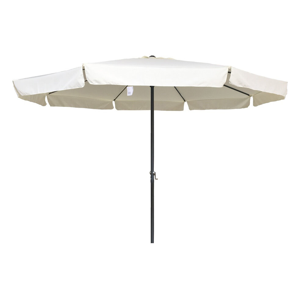 Velký kruhový slunečník bílé barvy s průměrem střechy 400 cm, který se ovládá kličkou.