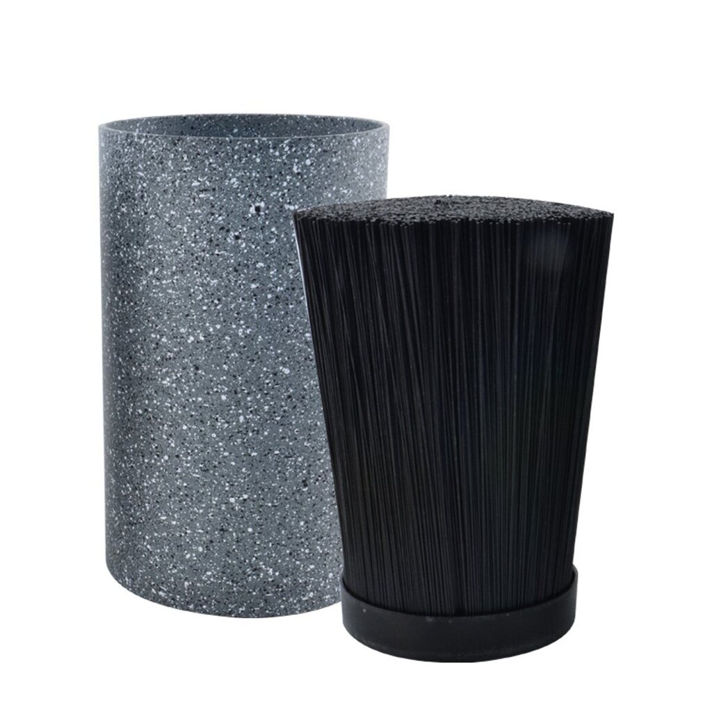 V tomto stabilním stojanu s vložkou se syntetickými štětinami lze uložit nože a další kuchyňské náčiní. Navíc se složitě nemusíte trefovat do jednotlivých otvorů/slotů, ale stačí lehce zatlačit nůž do štětin a je to. Masivní provedení stojanu se hodí do tradiční i moderní kuchyně. Má protiskluzové podložky. Štětiny snadno otočením stojanu vyjmete a v případě ušpinění vyklepete, otřete.