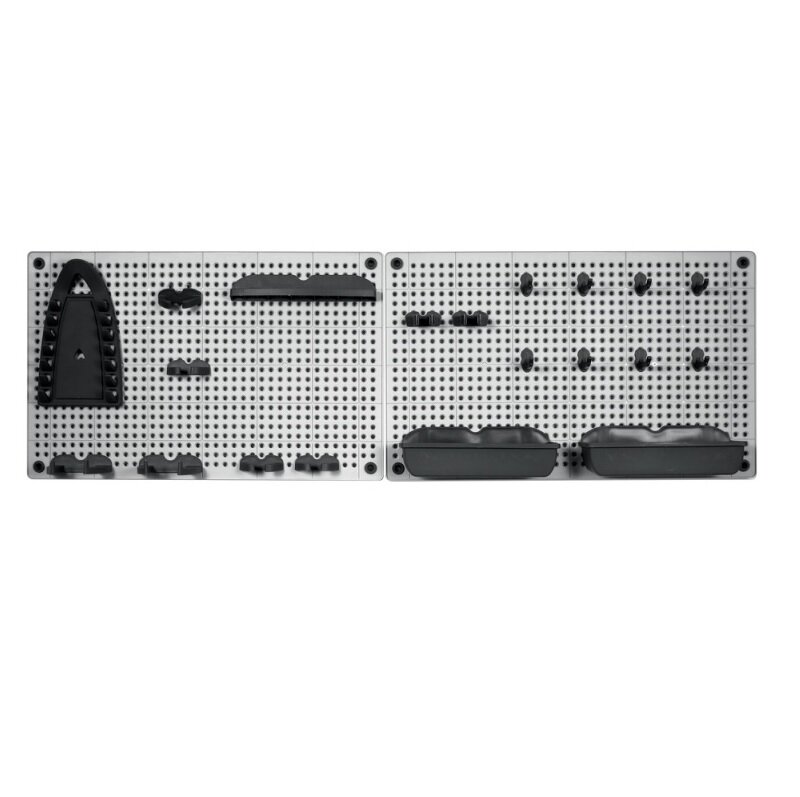 Praktický a stylový organizér na nářadí vyrobený z vysoce odolného plastu.Organizér se jednoduše přidělá přímo na stěnu, je ideální pro uspořádání všech dílenských nástrojů, které potřebujete mít vždy po ruce. Organizér můžete nastavit horizontálně nebo vertikálně.V balení je 2x organizační deska a velké množství doplňků..