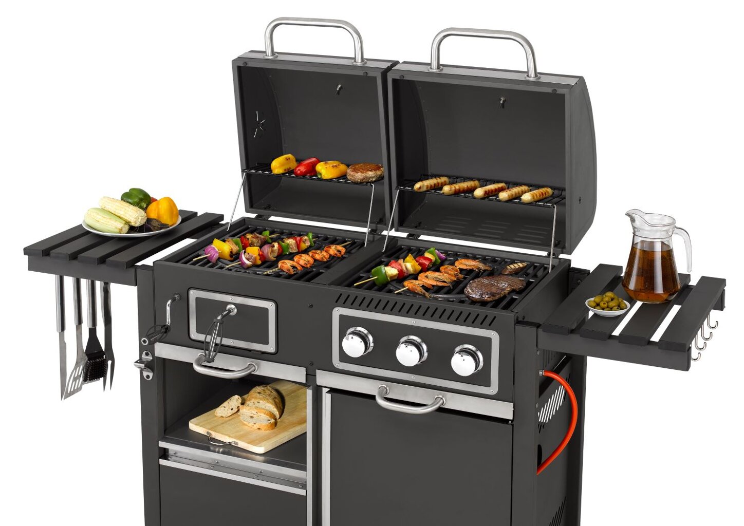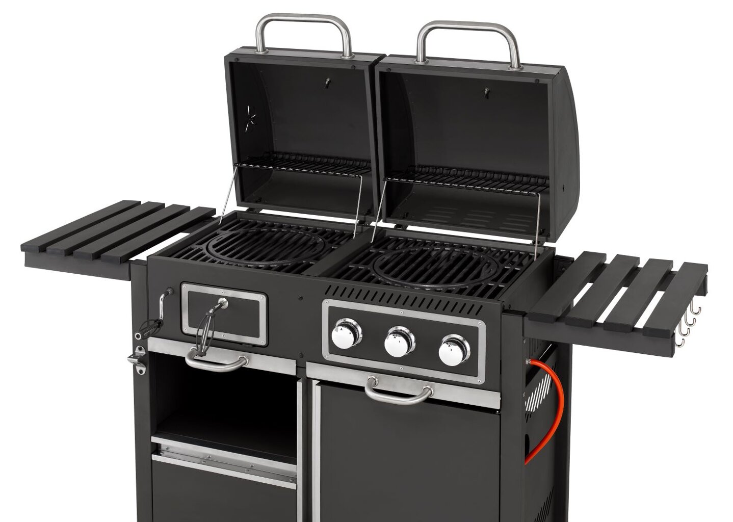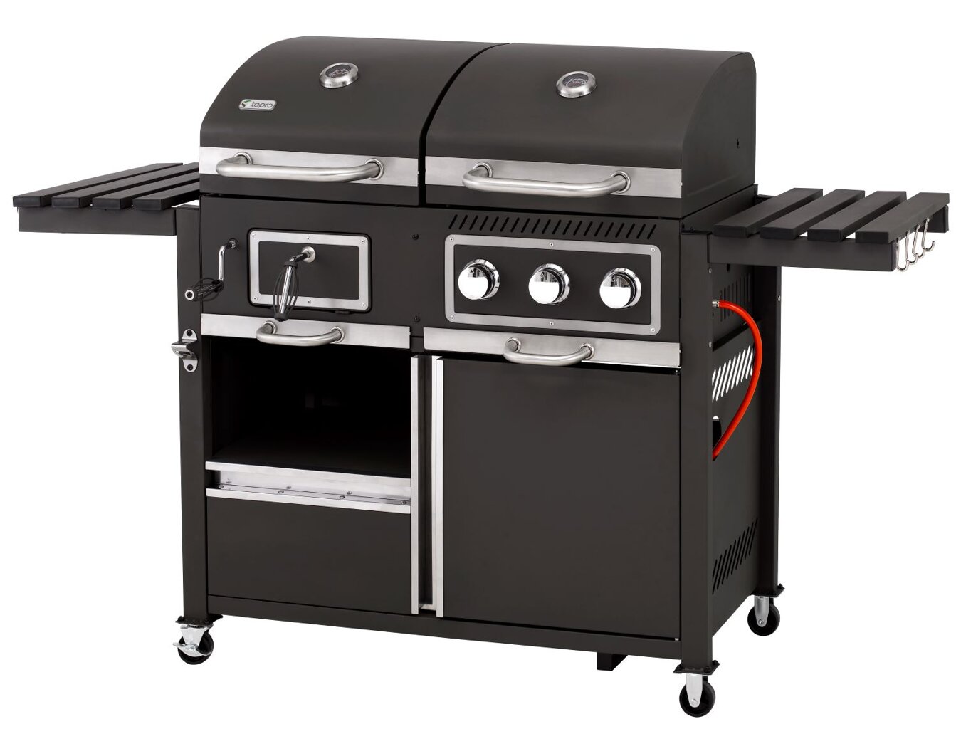 S tímto kombinovaným grilem na dřevěné uhlí a plyn můžete nejen zažít typickou chuť z dřevěného uhlí, ale také si užívat výhod plynového grilu. Kombinovaný gril, který splní všechna přání.