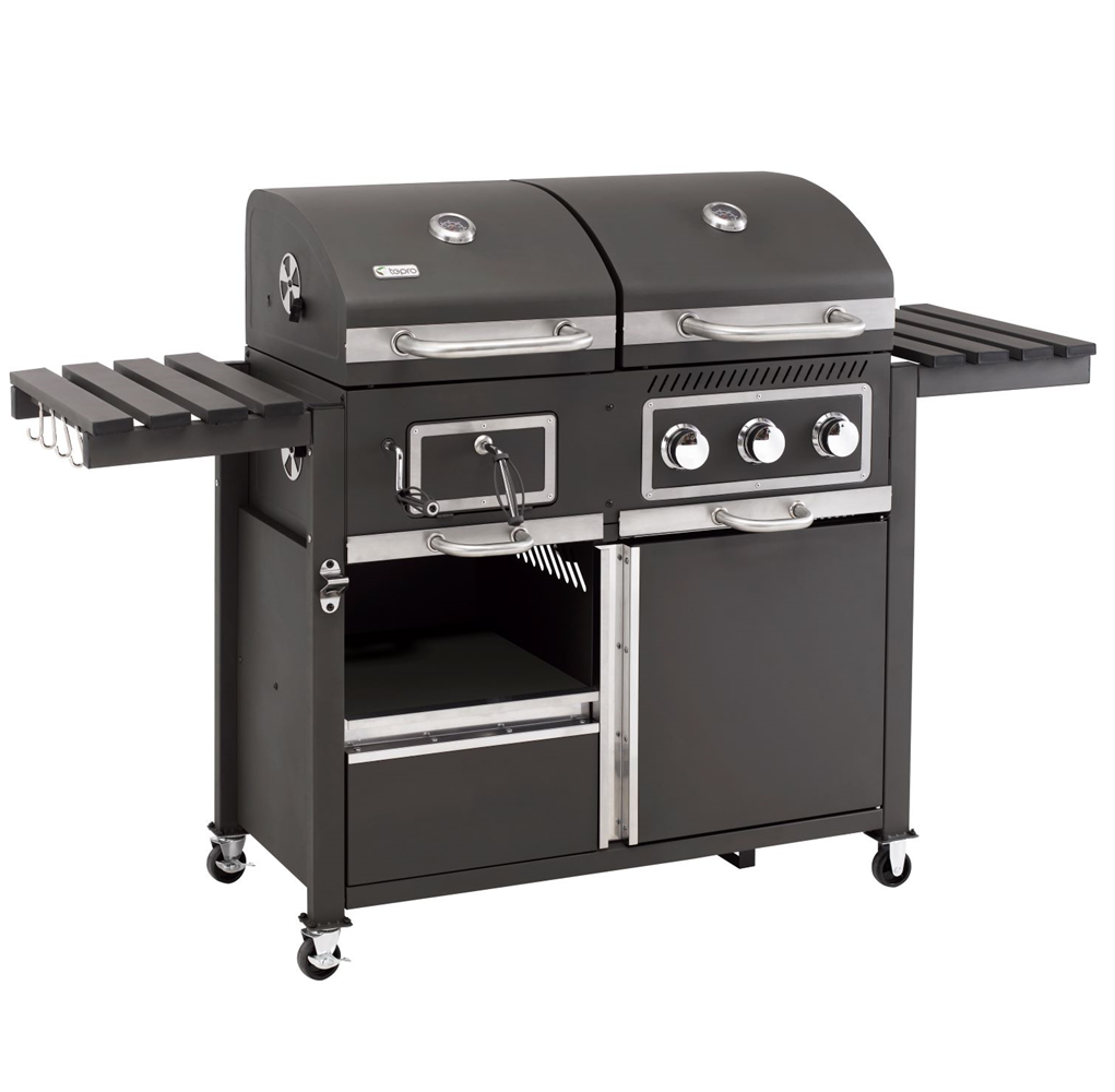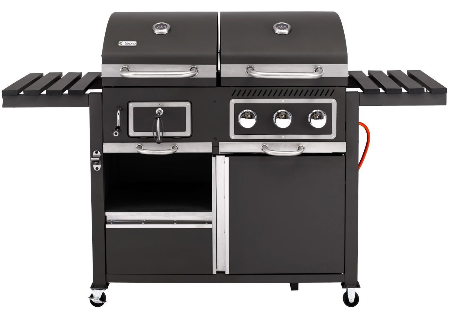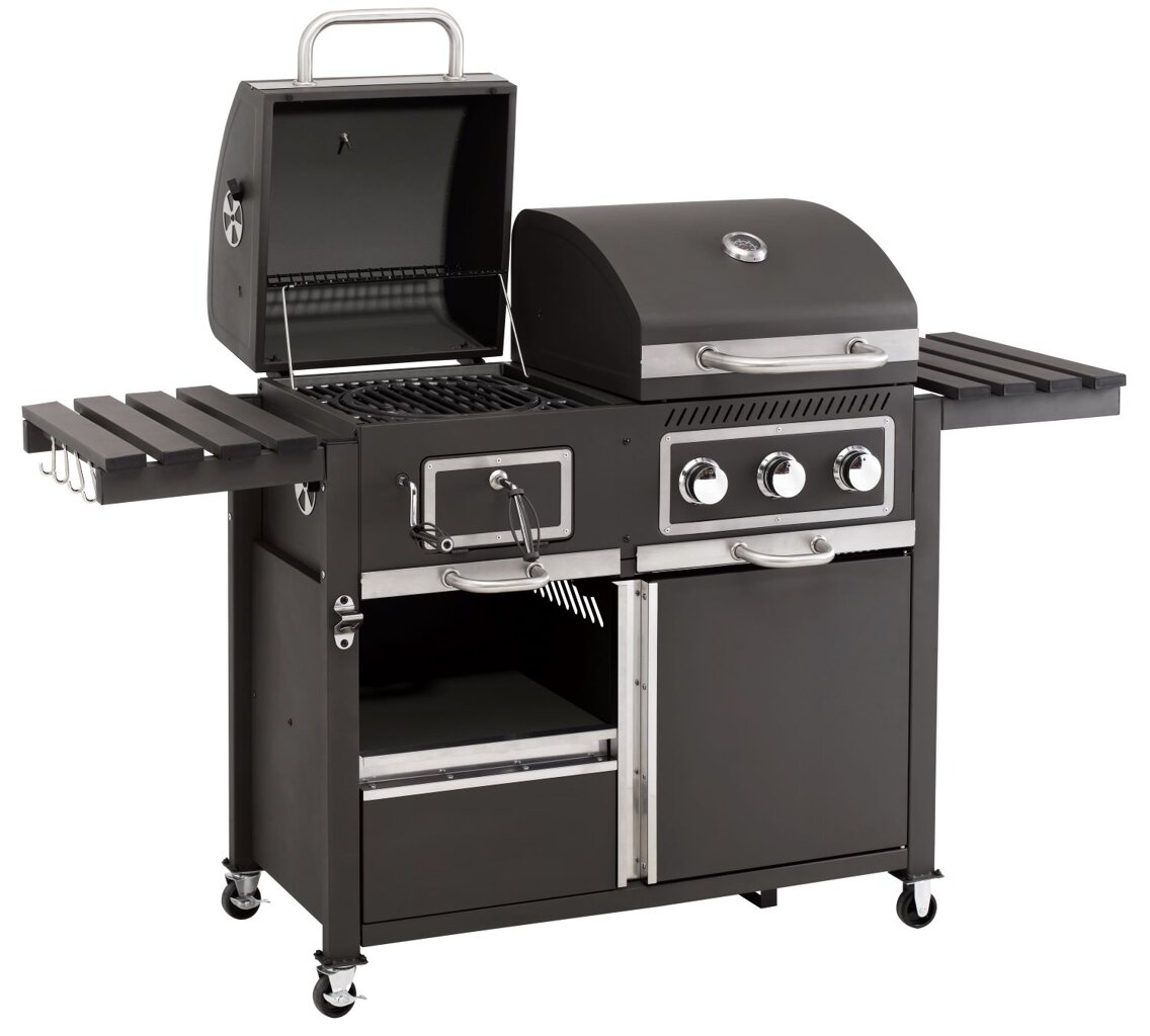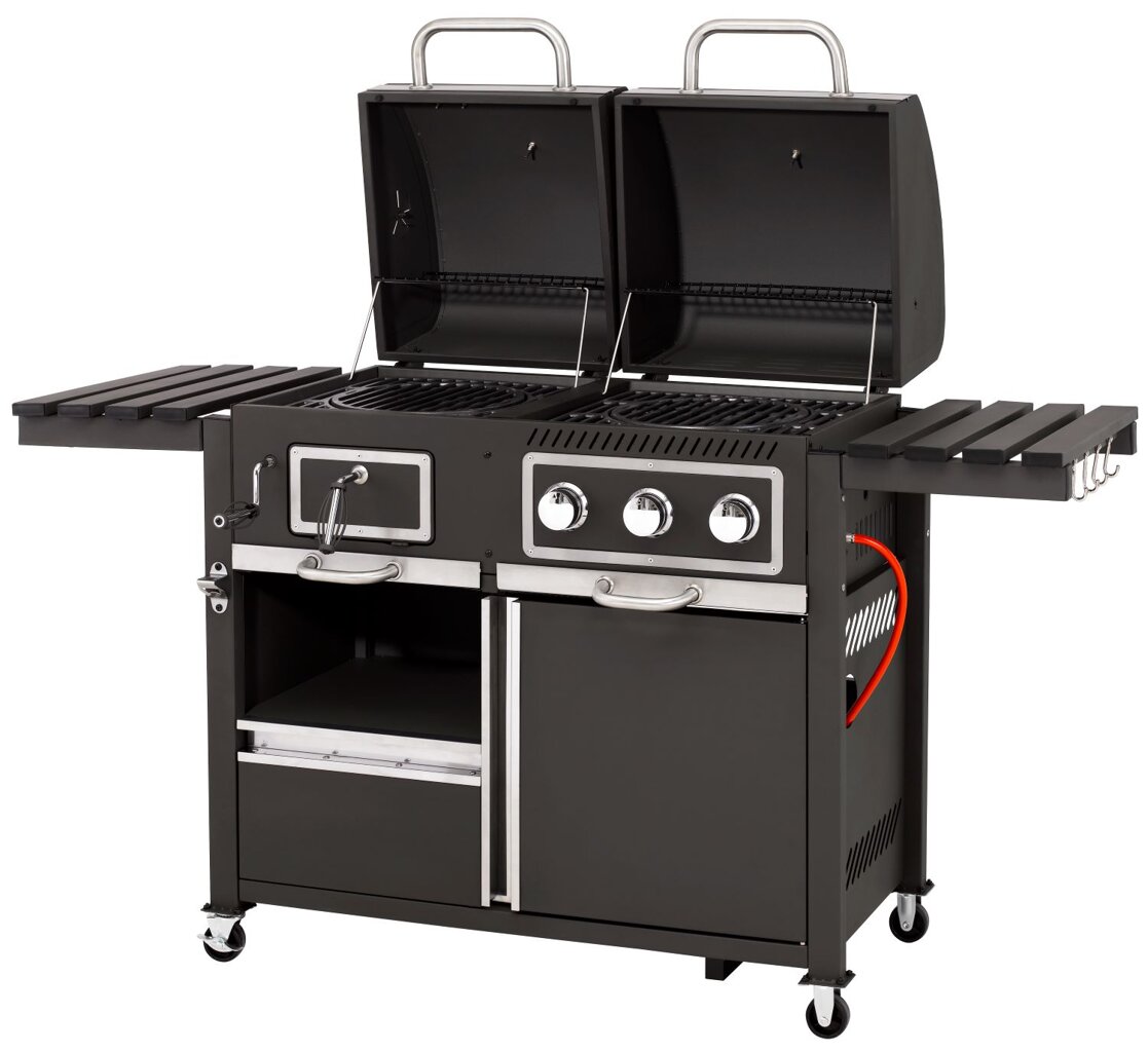 S tímto kombinovaným grilem na dřevěné uhlí a plyn můžete nejen zažít typickou chuť z dřevěného uhlí, ale také si užívat výhod plynového grilu. Kombinovaný gril, který splní všechna přání.