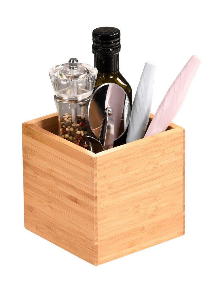 Univerzální organizér je praktickým řešením pro ukládání příborů, kořenek a dalších drobností ve kuchyni. Jeho rozměry 13 x 13 x 13 cm jsou ideální pro standardní kuchyňské zásuvky. Bambusový materiál je nejen esteticky příjemný, ale také ekologicky šetrný. Lze ho využít i v jiných místnostech, například v koupelně, pracovně apod. Certifikace FSC® zaručuje, že bambus pochází z udržitelných zdrojů.