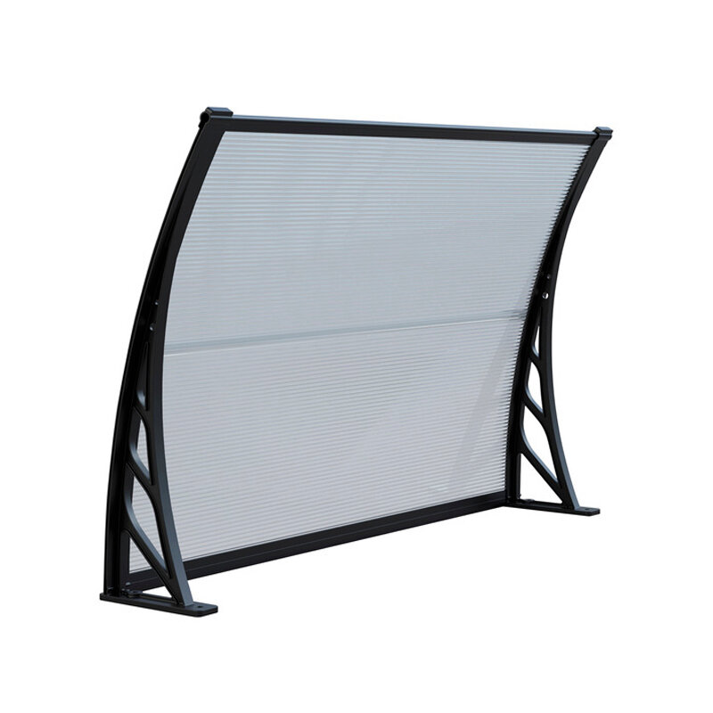 Oblouková stříška nad vchodové dveře o rozměrech 120 x 100 cm vyrobená z průsvitného polykarbonátu.