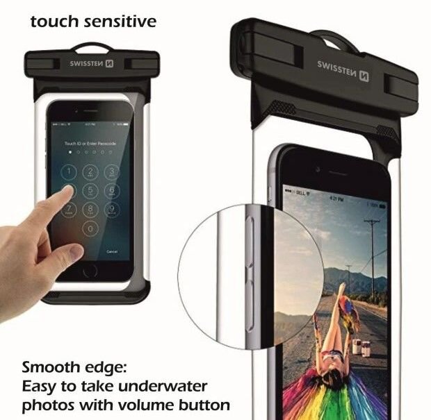 Vodotěsné pouzdro Waterproof od značky SWISSTEN je praktické řešení pro ochranu telefonu při vodních aktivitách. Vhodné pro smartphony s dotykovým displejem do velikosti 6,5", poskytuje ochranu díky krytí IPX8 – tedy i při ponoření pod vodu. Dotykový povrch pouzdra umožňuje běžné ovládání telefonu a dokonce i telefonování. Součástí balení je šňůrka, díky které můžete mít telefon stále u sebe. Díky tomu, že pouzdro ve vodě plave, se nemusíte bát ztráty zařízení. Skvělé pro letní výlety na vodu, zimní sporty i focení pod hladinou.